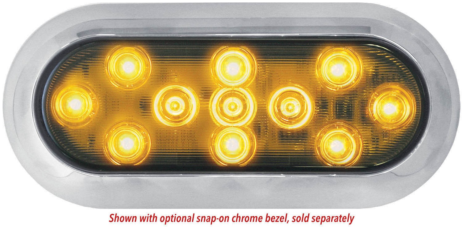 Oval design w/ black surface-mount housing & optional chrome bezel.